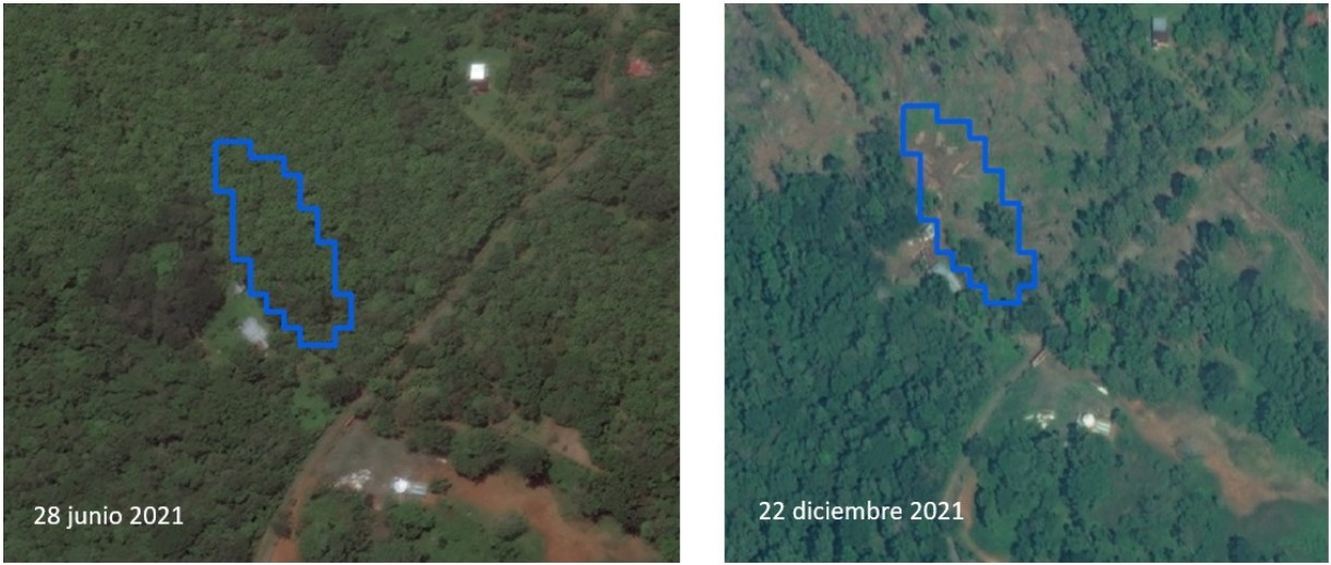 El resultado que arroja este proceso automatizado normalmente se presenta como una capa de polígonos. Cada uno de estos polígonos representa una zona donde se ha detectado un cambio sobre la superficie monitoreada. Esta forma de visualizar los cambios permite que los usuarios centren su atención en lugares específicos, evitando la necesidad de revisar imágenes completas de varios kilómetros cuadrados.